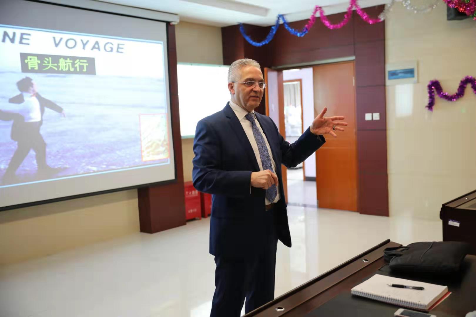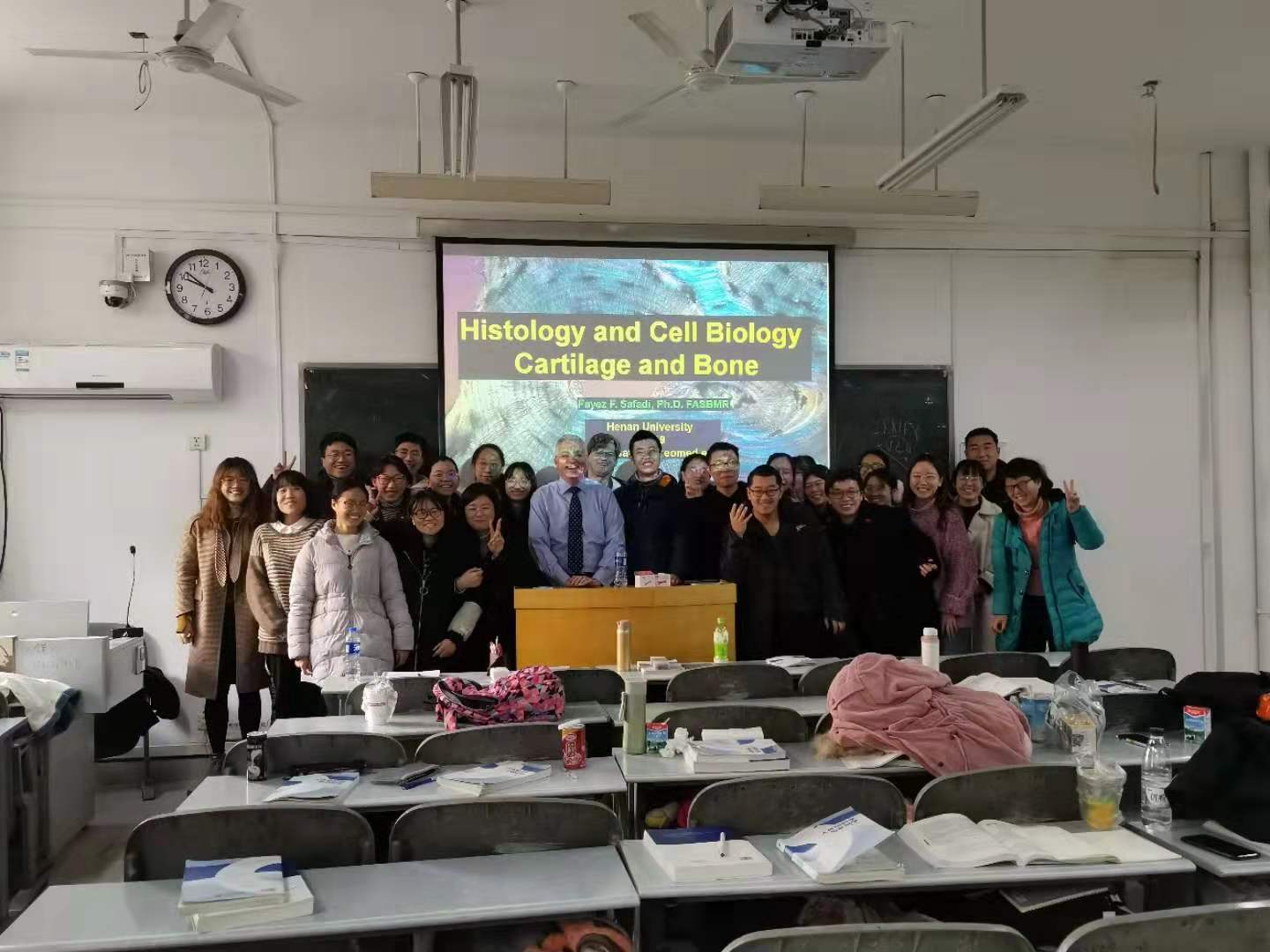 12月9日,Safadi教授为威尼斯wns8885556中国2018级生物科学明德班学生讲授题为《Histology and Cell Biology Cartilage and Bone》课程,同学们踊跃发言提问,教授耐心解答,互动效果良好。
